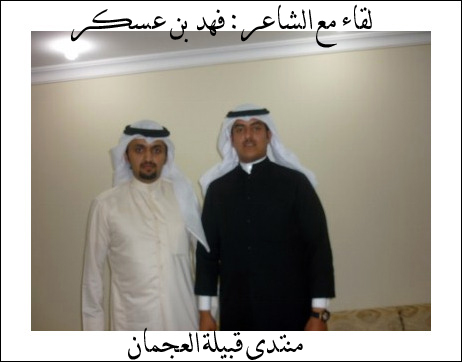 الله لا يهينك يا بن عسكر على اتاحة الفرصه لمعرفة كل جديد عن الشاعر فهد بن عسكر ال ضاعن العجمي |