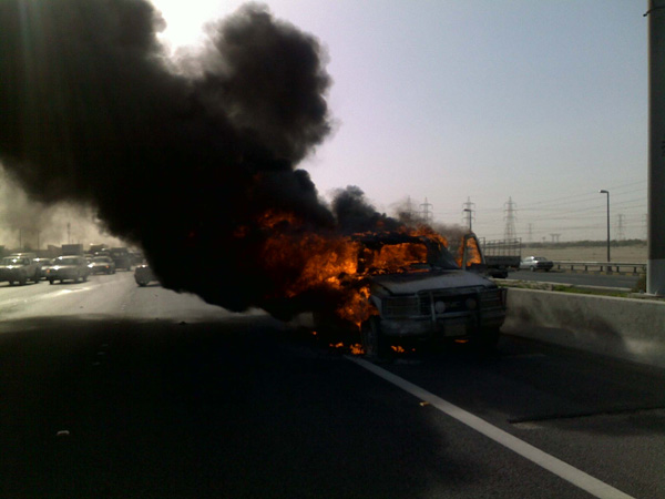 قدام بانزين الصباحيه اللي على الملك فهد , والحمدلله مافيه اصابات __________________ |