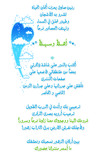 مشكووورين ع ذا الترحيب يا لبى قلوبكم و الدوسري يستاهل ذا الترحيب منكم __________________ ضيقه العصر تذبح كل منهو معافــــى***كيف ماتذبح الي فيه سقم وهواوي