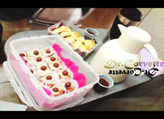 صورة قهوتنا اليوم ، الحلى والقهوهـ انا مسويتها وصادف ان صديقتي جايبه معمول وقهوهـ =S