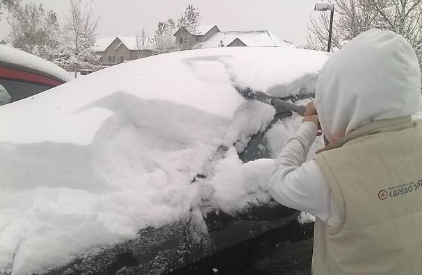 بن جوفان ، ماشاء الله طبقه سميكه من الثلج ع السيارهـ !