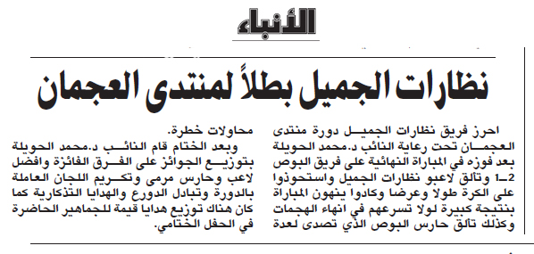 تغطية الصحافة للحفل الختامي لدورة شبكة قبيلة العجمان