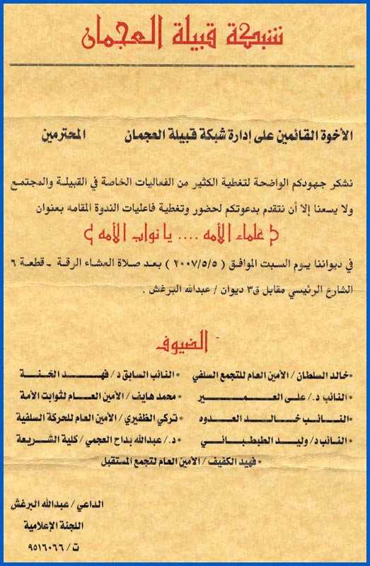 الندوه الجماهيريه " علماء الأمه .... يا نواب الأمه " في ديوان البرغش التعديل الأخير تم بواسطة ناصر بن حمود ; 12-05-2007 الساعة 10:27 PM |