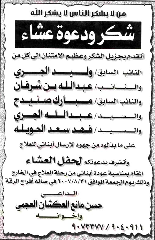 حفل حسن بن مانع العكشان ( الجمعه 31 / 8 / 2007)