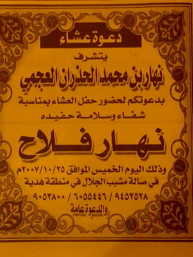 دعـــوة عشـــــاء الحــــــذران (اليوم الخميس 25 / 10 / 2007)