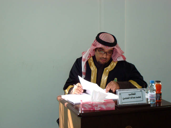ناقش الأستاذ محمد بن عبدالله بن حجرف آل سفران رسالة الماجستير بعنوان ( دور تكنولوجيا المعلومات في تطوير نظام الرقابه الداخليه لدى البنوك التجاريه الكويتيه ) يوم الثلاثاء الموافق 20 / 1 / 2009 في جامعة آل البيت في المملكة الأردنية الهاشمية وقد حصل على تقدير جيد جدا مرتفع بنسبة 81,5